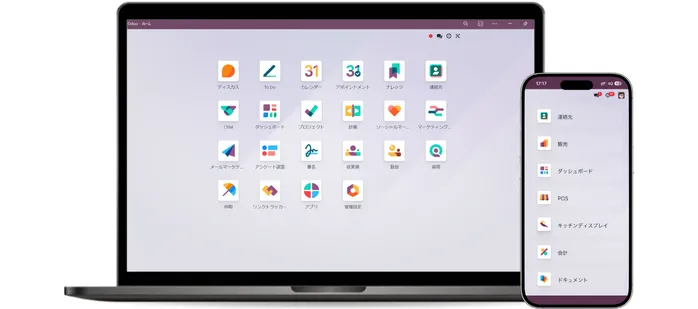 Odooは、販売管理、CRM、在庫管理、会計、POS、人事などの業務を統合的に管理できるクラウドERPシステムです。